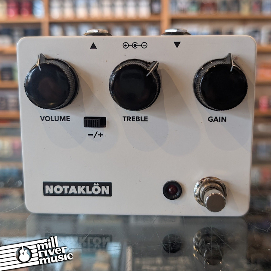 The NOTAKLÖN is a discontinued DIY overdrive kit from JHS. Modeled after the magical Klön, JHS modded these with the Shamrock switch for an increase of +4 dB gain and midrange frequencies. It's neat!