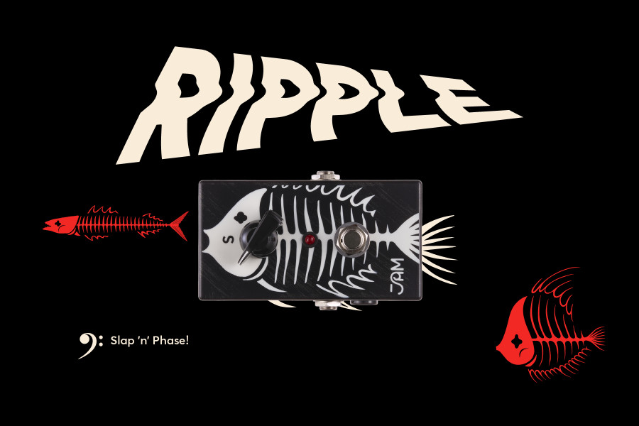 The Ripple performs equally well before and after overdrive pedals. One may not encounter 2-stage phasing circuits so often these days, but we believe in its sincerity and straight- forwardness so much we are proud to include it as the JAM pedals offering in the genre.