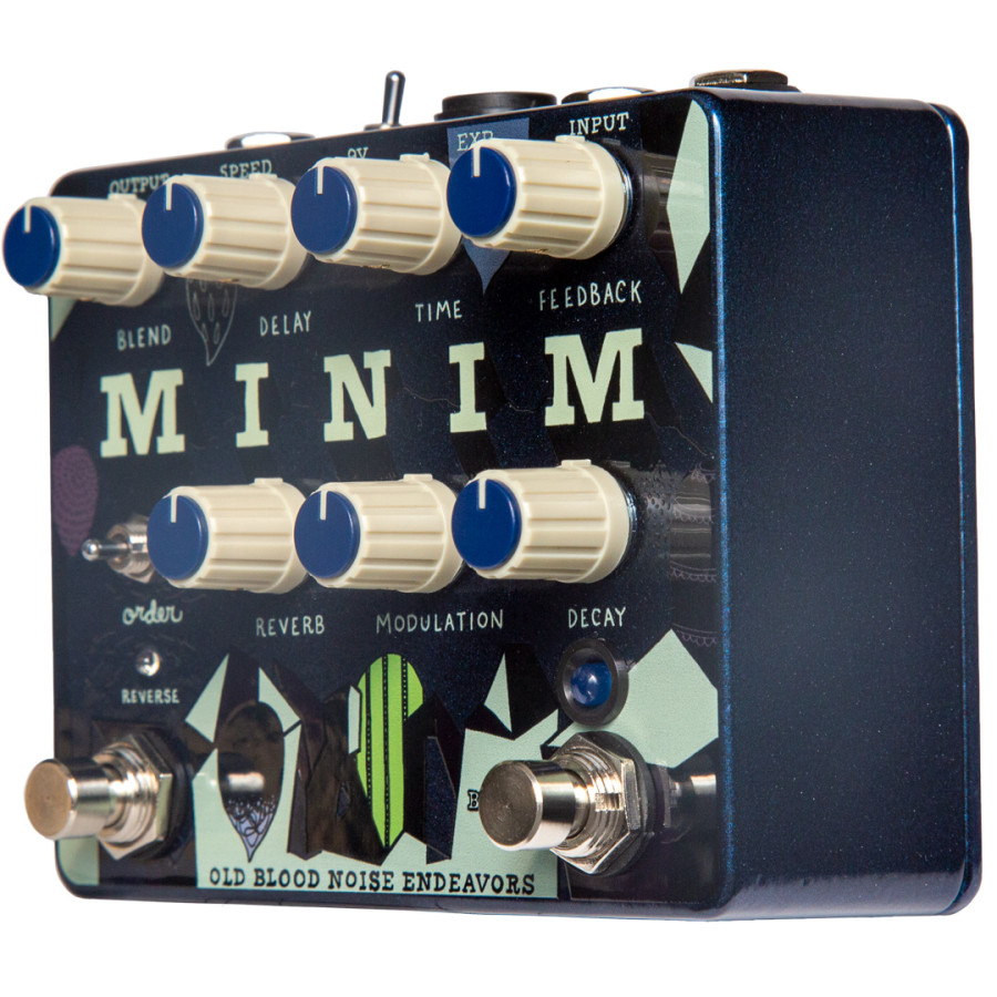 Looking back on an inspiring year of collaboration with Datachoir, Old Blood Noise Endeavors created Minim, a new pedal built from the foundation laid out by Rêver. Inside is a newly voiced reverb with harmonic tremolo, a modulated delay with nearly infinite repeats available, and a reverse section selectable between normal speed or double speed. Sat next to the Rêver, it’s like a long lost sibling. Put both on your board and see how well they get along.