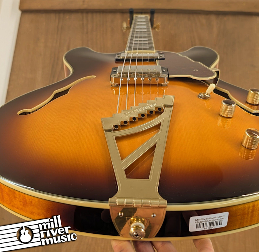 This guitar is in great condition and has been professionally inspected. The flame maple on the back and sides is particularly striking, and the gold hardware shows only light signs of aging consistent with an instrument from this era. All electronics are fully functional, and the frets have plenty of life left. This is a professional-grade archtop that offers the sophisticated look and sound of a Golden Era jazz box at a much more accessible price point.