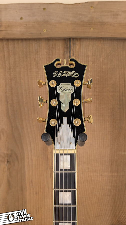 This mid-2000s D'Angelico Excel is a beautiful example of the high-quality reissues produced in Korea, which are widely regarded by jazz players for their exceptional build quality and period-correct aesthetics. This 17-inch archtop captures the elegance of John D'Angelico's original designs, featuring the iconic "stair-step" tailpiece, oversized headstock with mother-of-pearl inlays, and the signature gold hardware that defines the brand's visual identity.