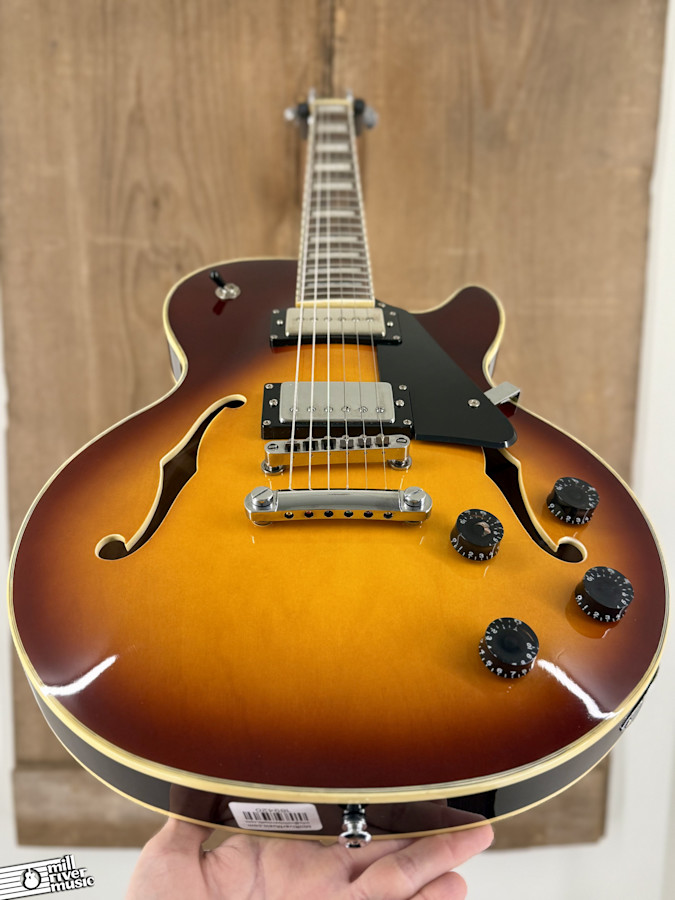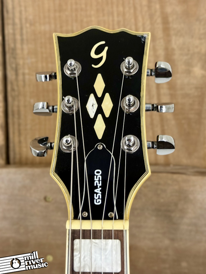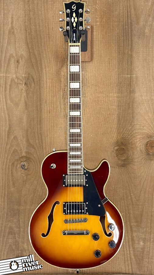 This Giannini GSA-250 is a fantastic and affordable entry into the world of semi-hollow body guitars. Kind of a hybrid of the classic "335" & "Les Paul" styles, it offers the warm, resonant tone and versatile sustain that makes this body shape a staple for jazz, blues, and rock. At a comfortable 7 lbs 9 oz, it balances well and feels solid in the hands.
