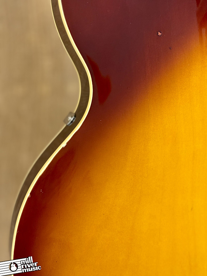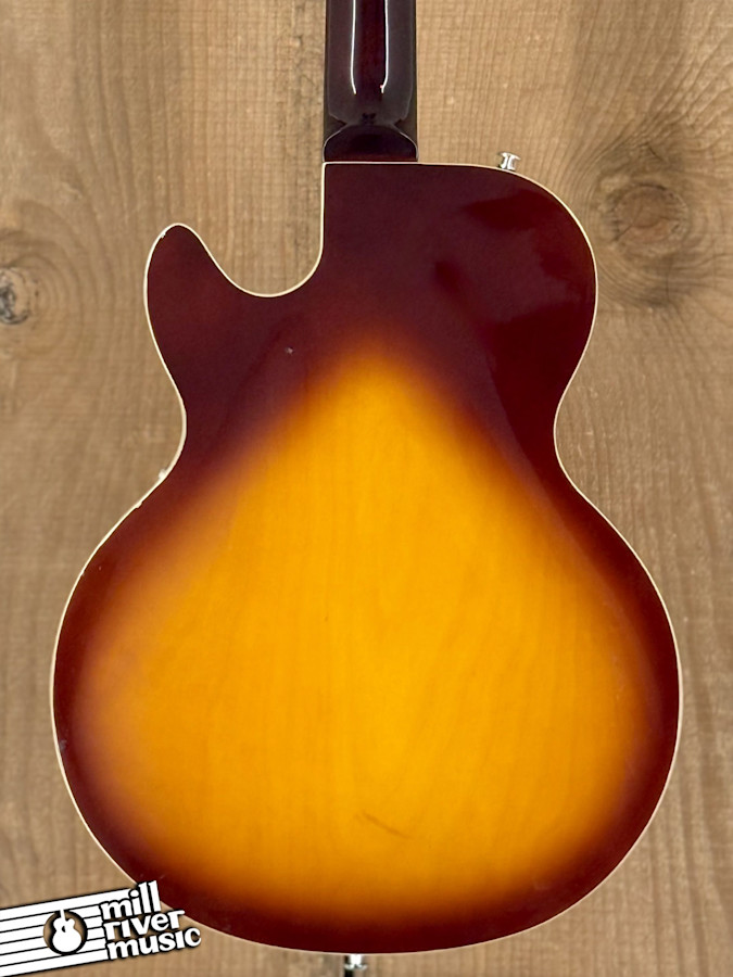This guitar is in Very Good condition. It has been played and shows some honest signs of use, including a couple of chips and dings, most notably on the back of the body. However, these are purely cosmetic. The guitar has just been professionally set up and plays great, with comfortable action and good intonation. It’s a reliable player that offers a lot of vibe for the money. It includes a gig bag.