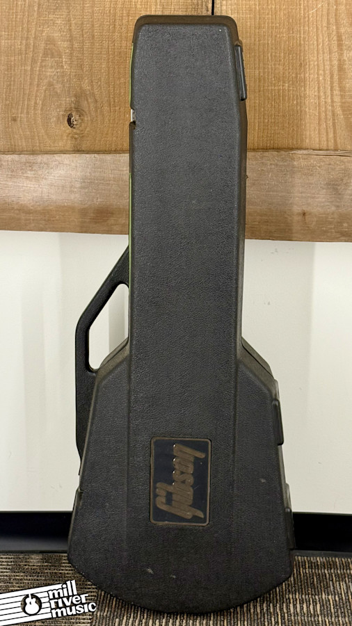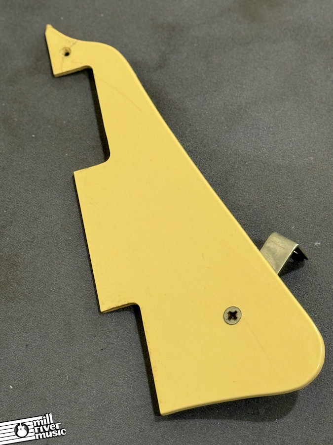 The guitar is in Very Good condition for an instrument over 30 years old. It shows a few nicks and dings here and there, commensurate with its age and honest use. All parts are original, pickguard is included but not attached (the tip around screw hole has been repaired, see picture). There is some fret wear, most noticeably on the B and G strings up to the 5th fret, overall it plays very well. This is a solid, resonant, and inspiring Les Paul from a great period of Gibson's history. It includes its original and sought-after "chainsaw" hardshell case.