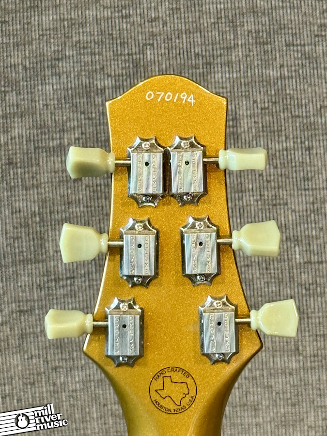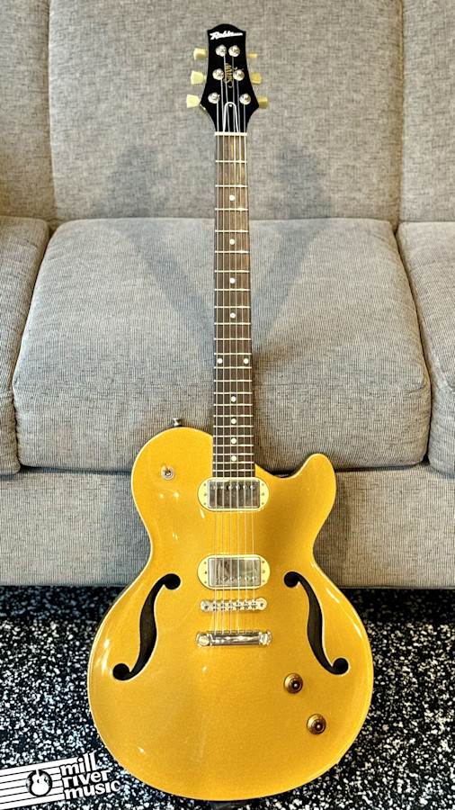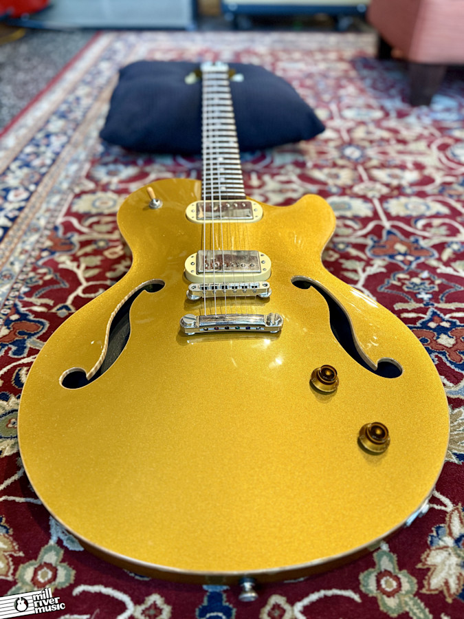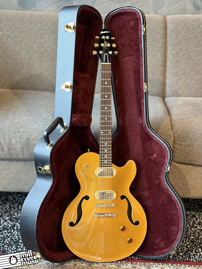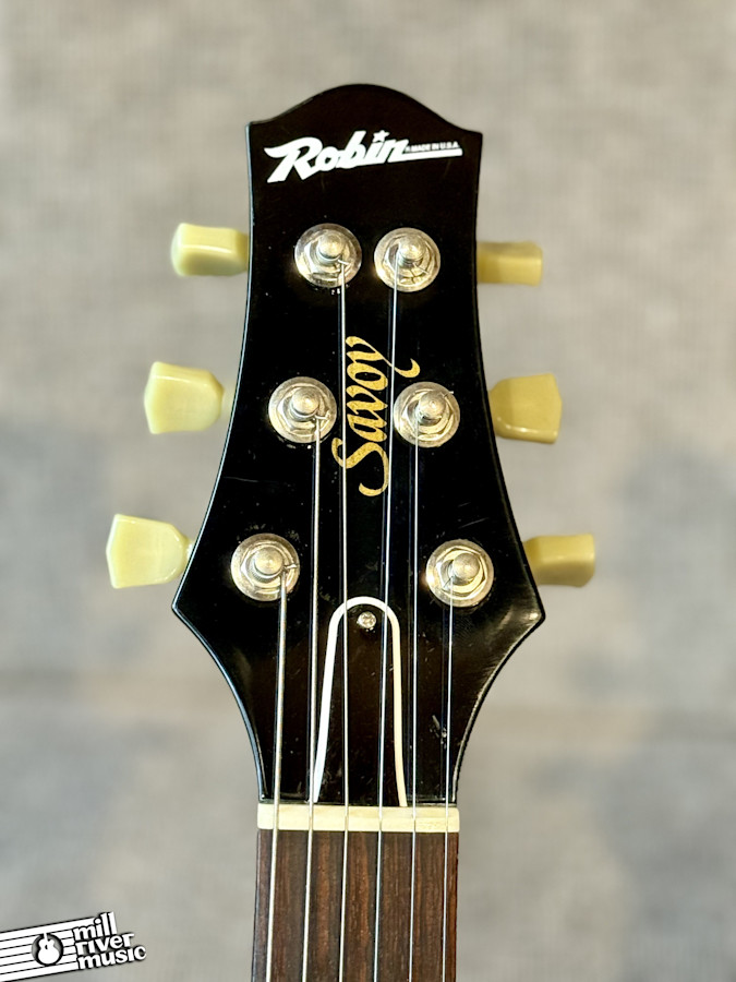 This is a fantastic and rare instrument from Robin Guitars, a highly respected boutique builder out of Houston, Texas. The Savoy model is a superb semi-hollow design, offering a perfect blend of airy resonance and solid-body punch. This 2007 example is finished in a stunning Metallic Gold and is a testament to the build quality and unique character of Robin instruments.