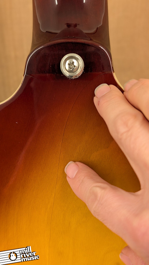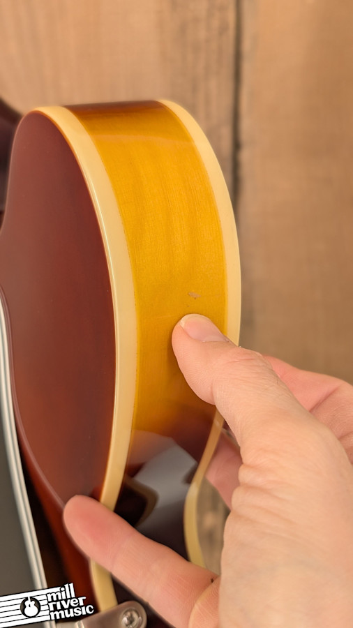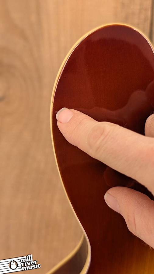 This instrument is in good used condition, showing honest signs of cosmetic play wear across the sunburst finish. It has been professionally set up in our shop and is playing beautifully with comfortable action and accurate intonation. Weighing in at 8 lbs, it has a substantial, high-quality feel that balances perfectly on a strap.