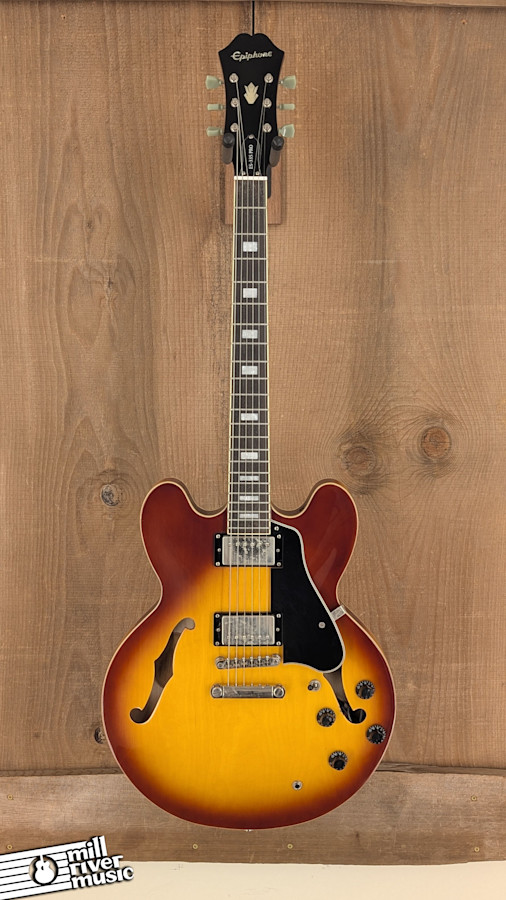 Specifications – Body: 5-ply Maple/Birch – Center Block: Solid Maple – Finish: Vintage Sunburst – Neck: Mahogany (1960s SlimTaper D Profile) – Fingerboard: Rosewood with Small Block Inlays – Pickups: Epiphone Alnico Classic PRO Humbuckers – Controls: 2 Volume (with Coil-Tapping), 2 Tone, 3-Way Toggle – Bridge/Tailpiece: LockTone Tune-O-Matic and Stopbar – Weight: 8 lbs – Condition: Very Good (Player Grade). Signs of cosmetic use; professionally set up and ready to rock. – Included: Hardshell Case.