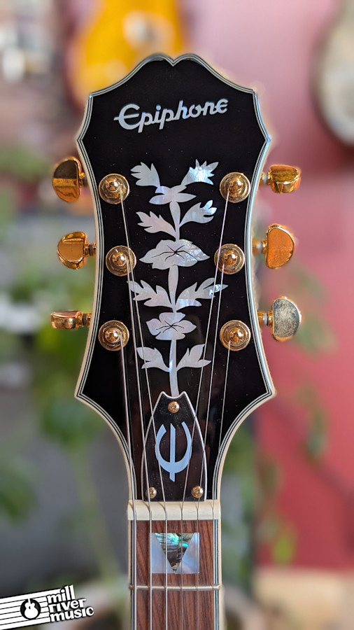 The Epiphone Sheraton II Pro is widely regarded as one of the most elegant semi-hollow body guitars in the Epiphone lineup, frequently cited for performance and aesthetics that punch way above its pay grade. Inspired by the classic ES-335 silhouette but featuring more ornate appointments, this model is built with a laminated maple body and a solid mahogany center block for increased sustain and feedback resistance. The beautiful vintage sunburst finish is perfectly complemented by bound f-holes and gleaming gold hardware.
