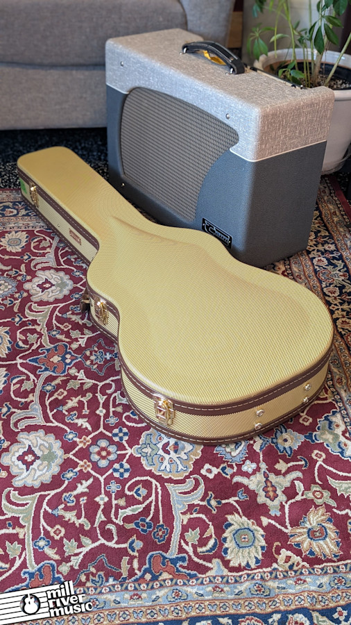 This instrument is in excellent condition, showing only minimal signs of play wear. The gold hardware remains bright, the electronics have been fully tested for silent and reliable operation, and the frets show very little use. To complete the package, this Sheraton II Pro includes a high-quality tweed hardshell case that offers superior protection and a classic vintage look.