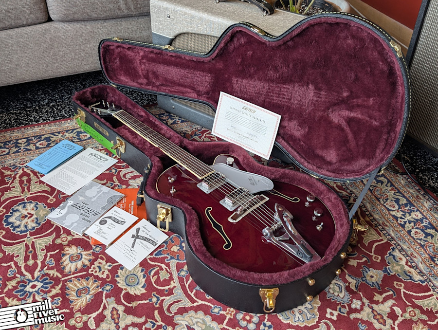 This particular instrument is in mint, "as-new" condition. While we are not an authorized Gretsch dealer, this guitar has been played only a handful of times and remains in pristine shape. It includes the original hardshell case along with the complete set of factory case candy and all certificates of authenticity. This is a rare opportunity to save hundreds off the price of a brand-new model while still receiving a collector-grade instrument that is essentially untouched.