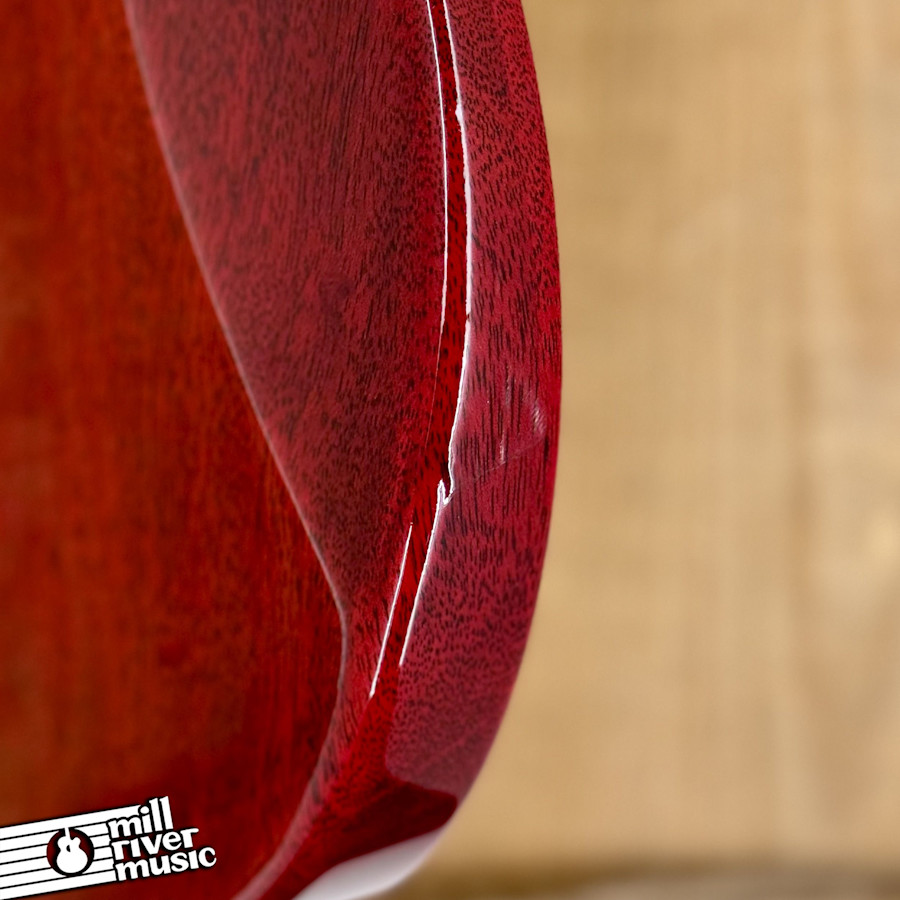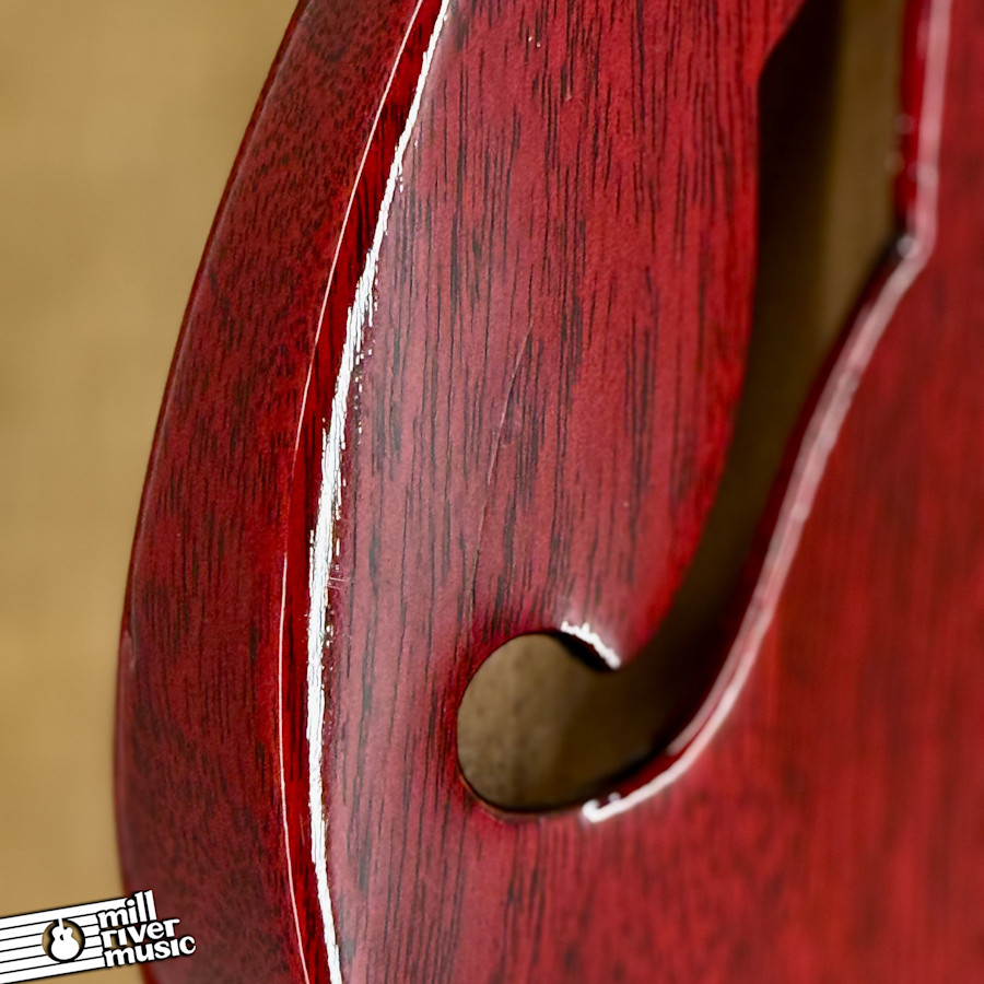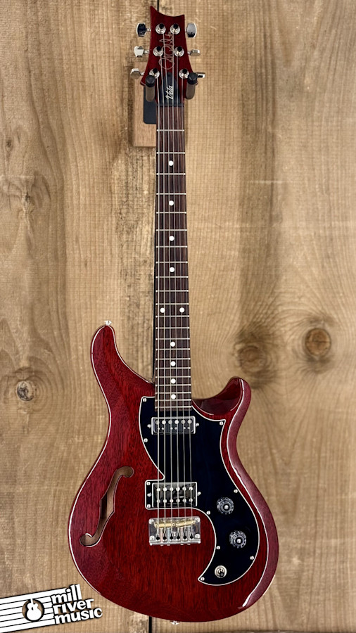 This guitar is in Very Good condition and plays beautifully. While it is mechanically sound and feels fantastic in the hand, there are a few cosmetic imperfections to note: there is a hairline crack (less than 2") at the f-hole; a depression in the finish on the side, near the f-hole, right next to bevel (about the size of a half-dollar); and a very small imperfection on the front of the headstock below the low E tuner. These are not cracks in the wood and there is no exposed wood, please refer to the photos for a closer look. Despite these cosmetic blemishes, this is a top-tier, American-made instrument that is ready to work. It includes its original PRS padded gig bag.