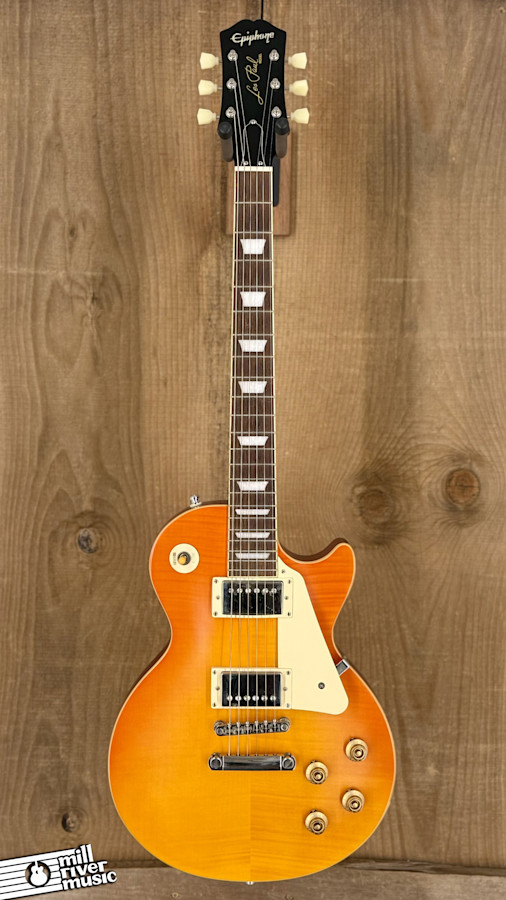 This Epiphone 1959 Les Paul Standard is a stunning recreation of the "Holy Grail" of vintage guitars, made in direct partnership with the Gibson Custom Shop. It captures the look, feel, and tone of the original rare classics at an accessible price point. This particular example features the beautiful "Aged Honey Fade" finish, a Sweetwater Exclusive color that gives it a unique and distinguished vibe.