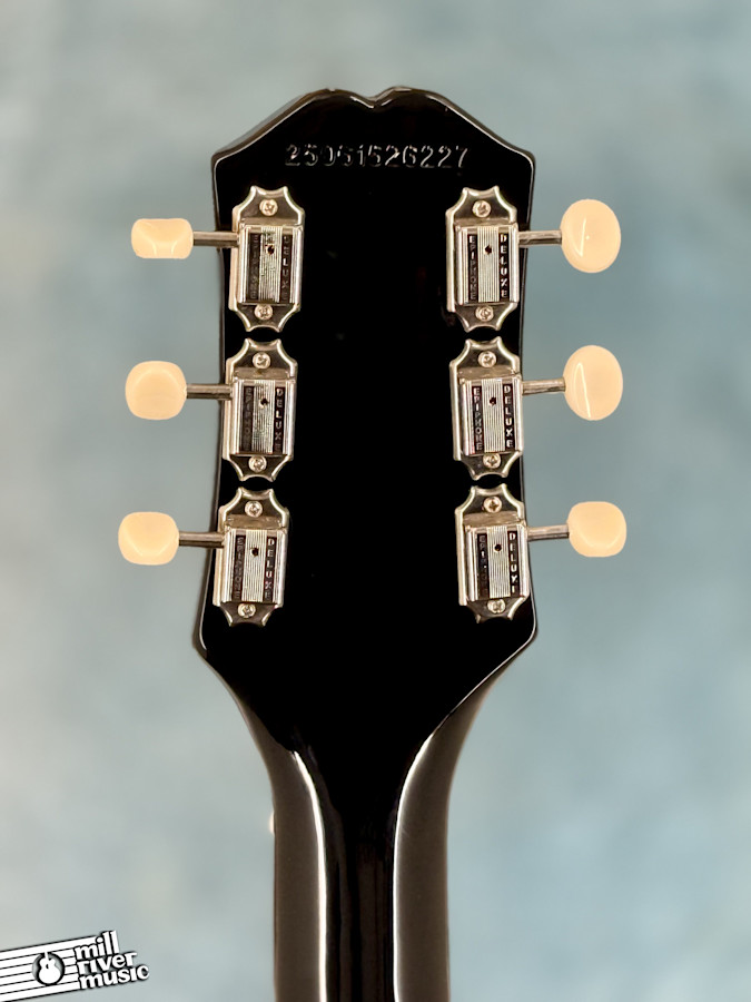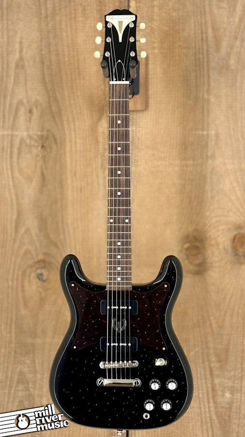 The Epiphone Wilshire is a cult classic that dates back to 1959, offering a symmetrical double-cutaway design that provides unparalleled access to the upper frets. This 2025 model in Ebony is a rock-and-roll machine at a fantastic value. With a solid mahogany body and neck, it possesses the "guts and bones" you’d expect from a high-quality Gibson-style electric. Equipped with a pair of soapbar P-90 PRO pickups, this guitar can transition seamlessly from a soulful, low-end groan to a mid-range growl that cuts through any mix.