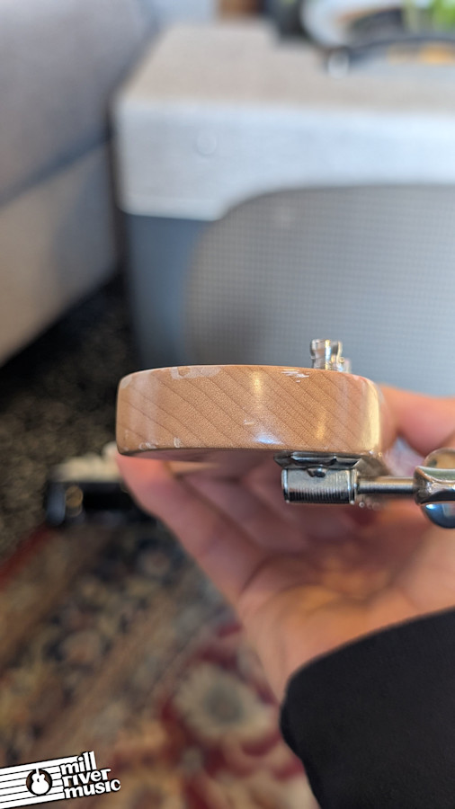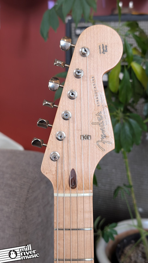 This particular guitar has just been professionally set up in our shop and is playing as nice as could be. It features the signature soft V-shape neck profile that is remarkably comfortable and has become a favorite for players who prefer a more ergonomic, vintage-inspired feel. While the guitar shows some honest signs of wear from play, the frets remain in excellent shape with barely any wear to note, ensuring smooth bends and clean notes across the entire board. It is truly an addictive player that is hard to put down once you start.