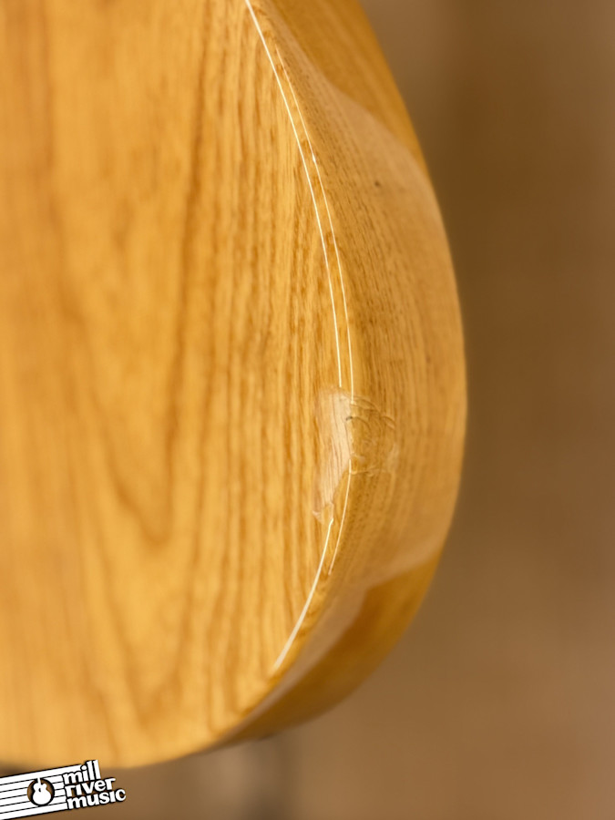This guitar is in Very Good condition. It has one notable cosmetic issue: it looks like it took a little hit on the corner of the back and side on the lower bout (bass side). As shown in the pictures, there's a small section of exposed wood surrounded by a bit of affected finish. This is purely cosmetic and does not affect the guitar's structure, playability, or comfort. Otherwise, the guitar is in fine shape. Body is Ash and at 9 lbs 5 oz, it has a solid, resonant vibe without feeling heavy. Please note, no bag or case is included.