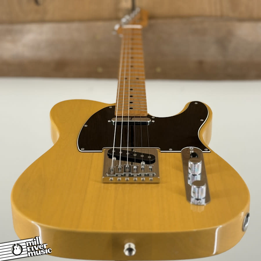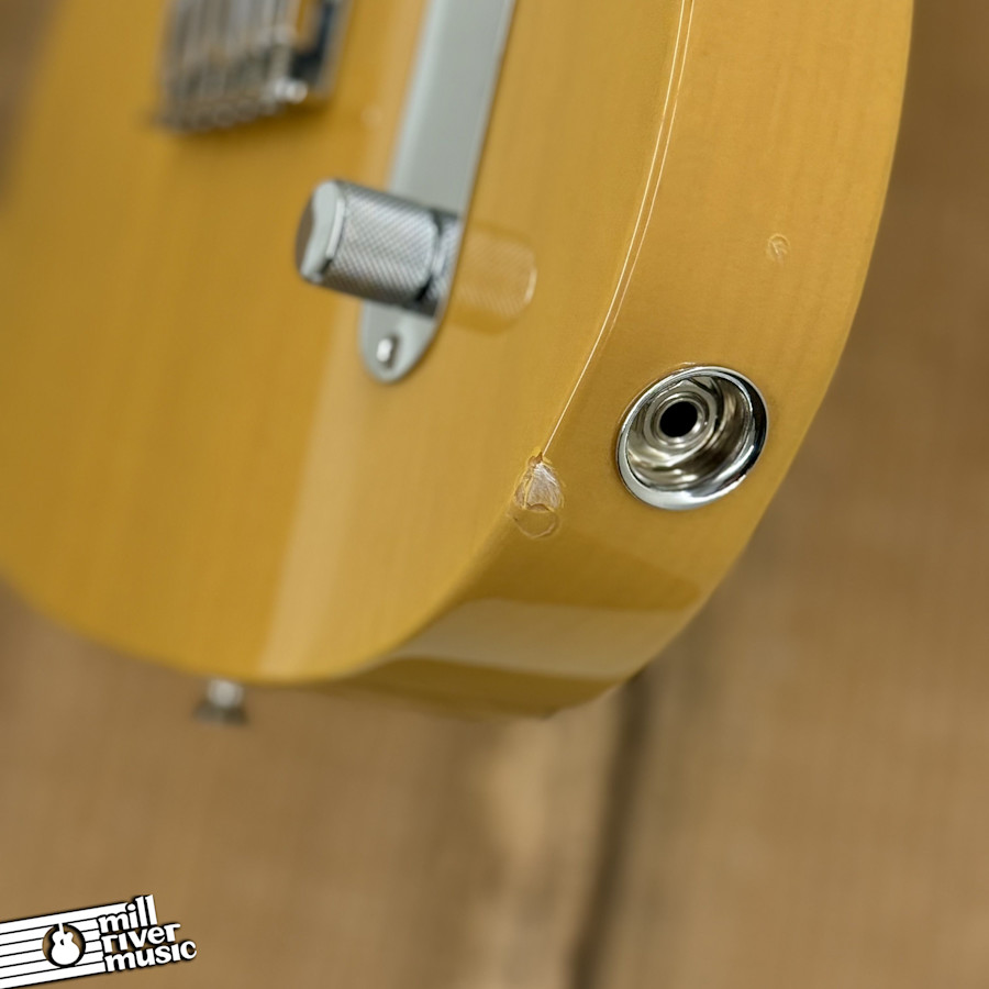 This 2017 Fender Standard Telecaster captures the quintessential look of the electric guitar with its classic Butterscotch Blonde finish. A true workhorse, the "Standard" series (Made in Mexico) is renowned for blending vintage aesthetics with modern reliability and playability. The Alder body provides a balanced, resonant tone that sits perfectly in any mix.