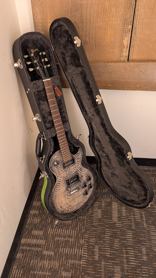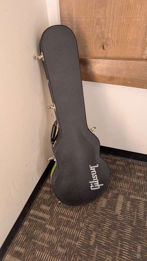 In excellent condition, this guitar shows only very minor signs of play. The Worn Ebony finish is well-preserved, and the frets have plenty of life left. All electronics, including the unique 3-way toggle located near the bridge and the kill-switch located where the selector usually sits, function perfectly. It comes protected in its original Gibson hardshell case, which is also in excellent shape.