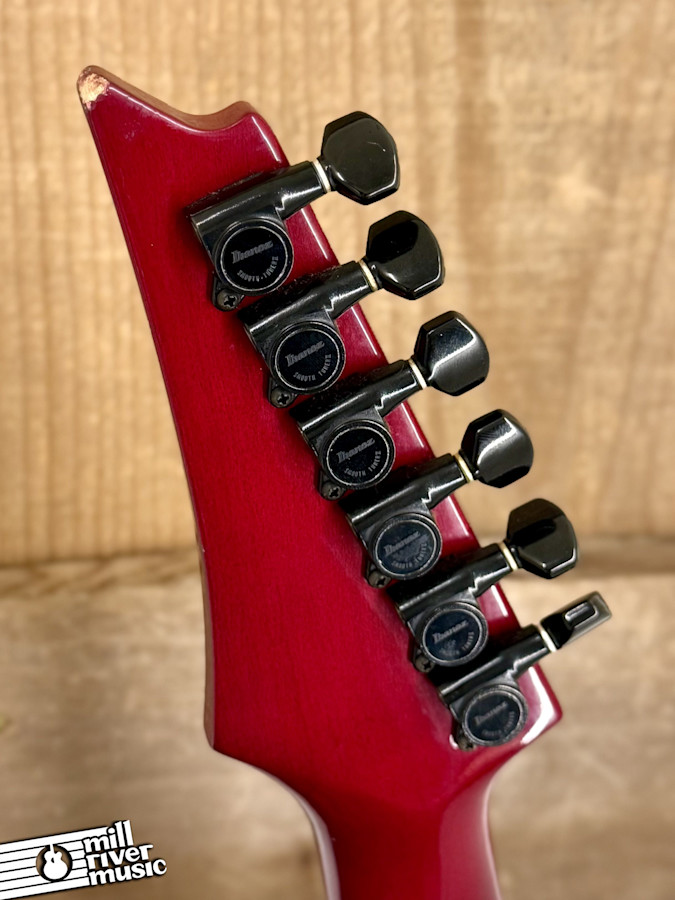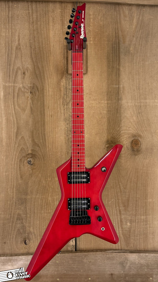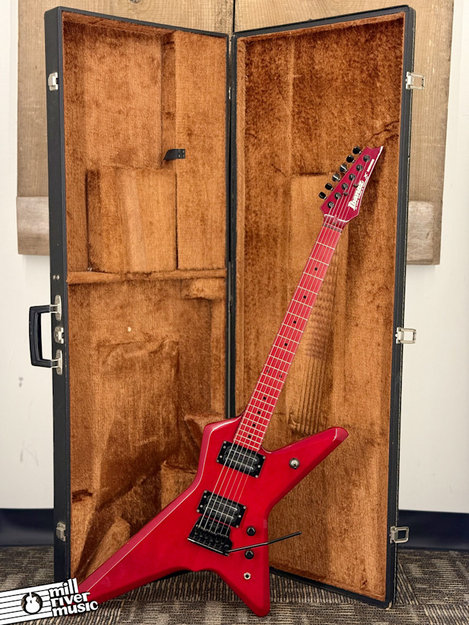 This 1984 Ibanez DT250-TR Destroyer is a wicked cool piece of 1980s Japanese craftsmanship. Finished in a vibrant 360 degree Transparent Red, this guitar screams vintage metal and hard rock attitude. Perhaps the most surprising feature is its weight- at 6 lbs 12 oz, it is feather-light, making it one of the most comfortable stage guitars you will ever find.