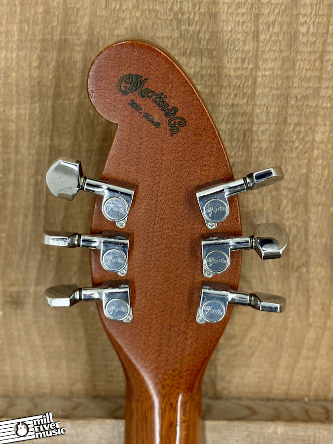 This guitar offers a surprisingly wide range of sounds, thanks to the original DiMarzio humbuckers and two mini-toggle switches. The wiring harness is original except for the 3 way toggle switch and tip (originals are in the case), and the electronics work perfectly. It's a solid player-grade instrument that is in overall nice shape for its age. Strap buttons have been changed. It has had some professional repairs to ensure its structural stability for years to come. The headstock, while never fully broken, had two cracks on each side of the nut that have been fully repaired and are now solid. Additionally, the headstock veneer around the "M" of the logo appears to have been reglued, and there is a visible hairline crack within the logo itself. This is a great-playing, rare Martin that is ready for its next chapter. It includes its original hardshell case.