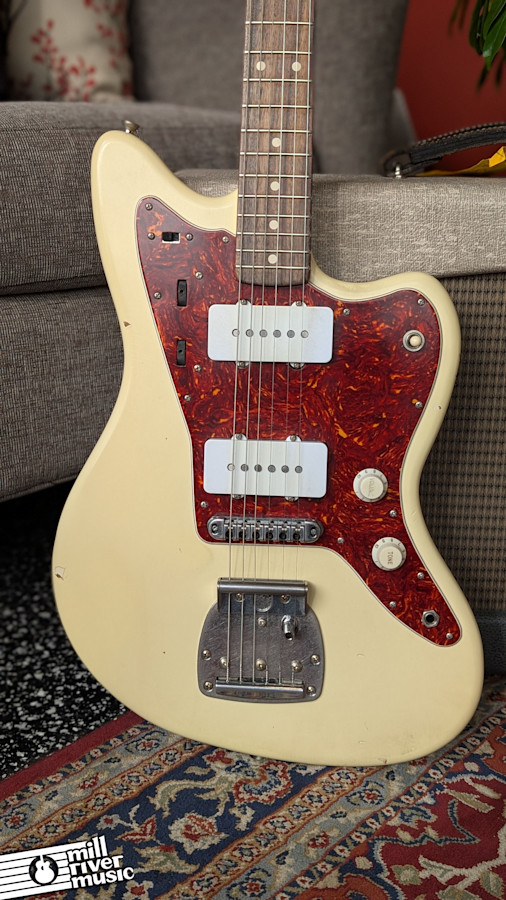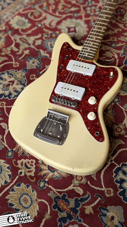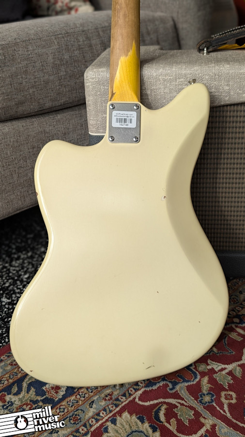 Specifications – Model: JM63 – Builder: Nashguitars – Finish: Olympic White (Light Aging) – Body: Alder – Neck: Maple (C Profile) – Fingerboard: Rosewood – Pickups: Lollar Jazzmaster Single-Coils – Electronics: Lead and Rhythm Circuits; 3-Way Selector – Bridge: Traditional Floating Tremolo – Condition: Excellent (Relic). Professionally set up and fully functional. – Included: Original Nash Alligator Hardshell Case.