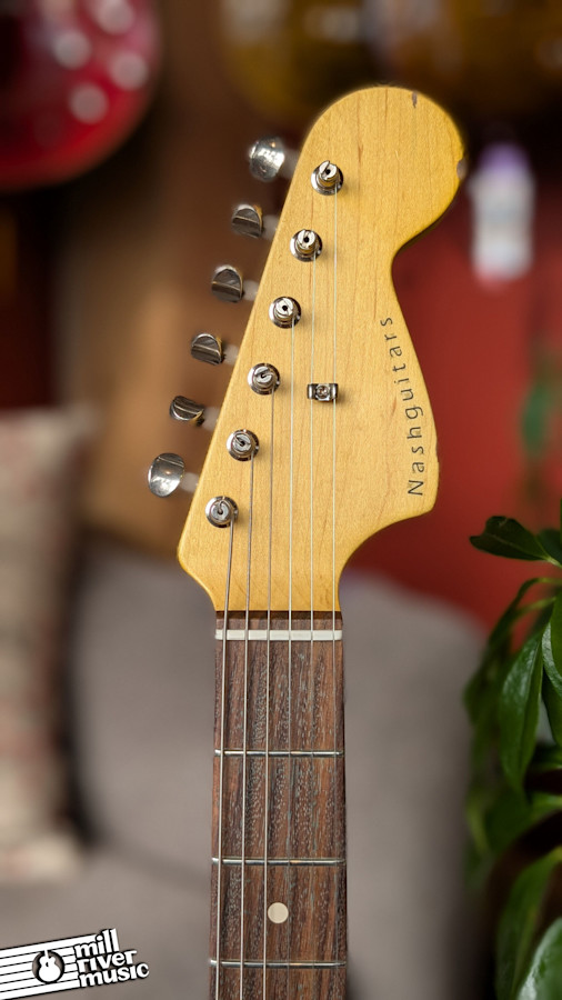 As with all Nash guitars, the attention to detail in the relic process is exceptional, offering a broken-in feel that is immediately familiar. This unit is equipped with high-end Lollar pickups, which provide the wide, soapbar clarity and nuanced harmonic response that Jazzmaster players crave. The circuit is traditional, allowing you to access the darker rhythm circuit or the chimey lead circuit with ease.