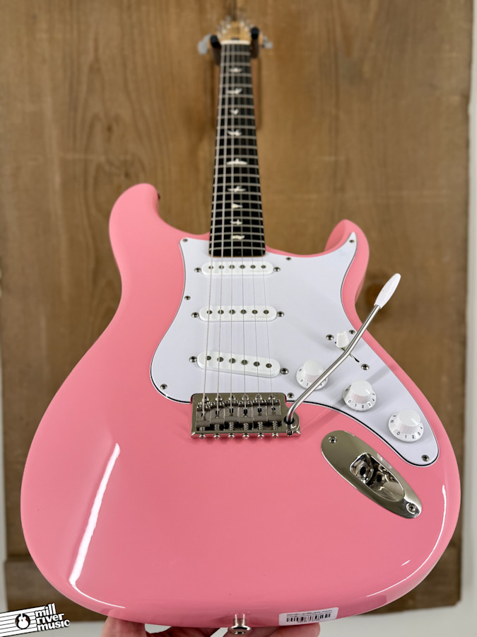 This 2023 PRS Silver Sky is a fantastic example of the celebrated John Mayer signature model, presented in the fantastically original Roxy Pink finish. The guitar feels light and airy—both in hand and sonically—delivering wonderful Strat-style tones but with less noise, a hallmark of PRS design and quality. The neck profile is a true highlight, closely resembling the feel of the best Fender necks from the early 1960s (specifically 1963/64).