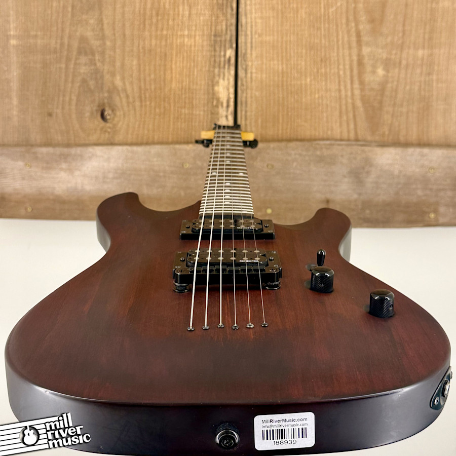 The Schecter Omen-6 is a mainstay in the world of heavy rock and metal, known for its rugged construction and high-output performance. Featuring a basswood body and a fast maple neck, this 2010 model in Walnut Satin offers a sleek, no-nonsense aesthetic. The dual Schecter Diamond Plus humbuckers are designed to push an amp into thick distortion while maintaining enough clarity for lead work, making it a reliable workhorse for the stage or the practice room.
