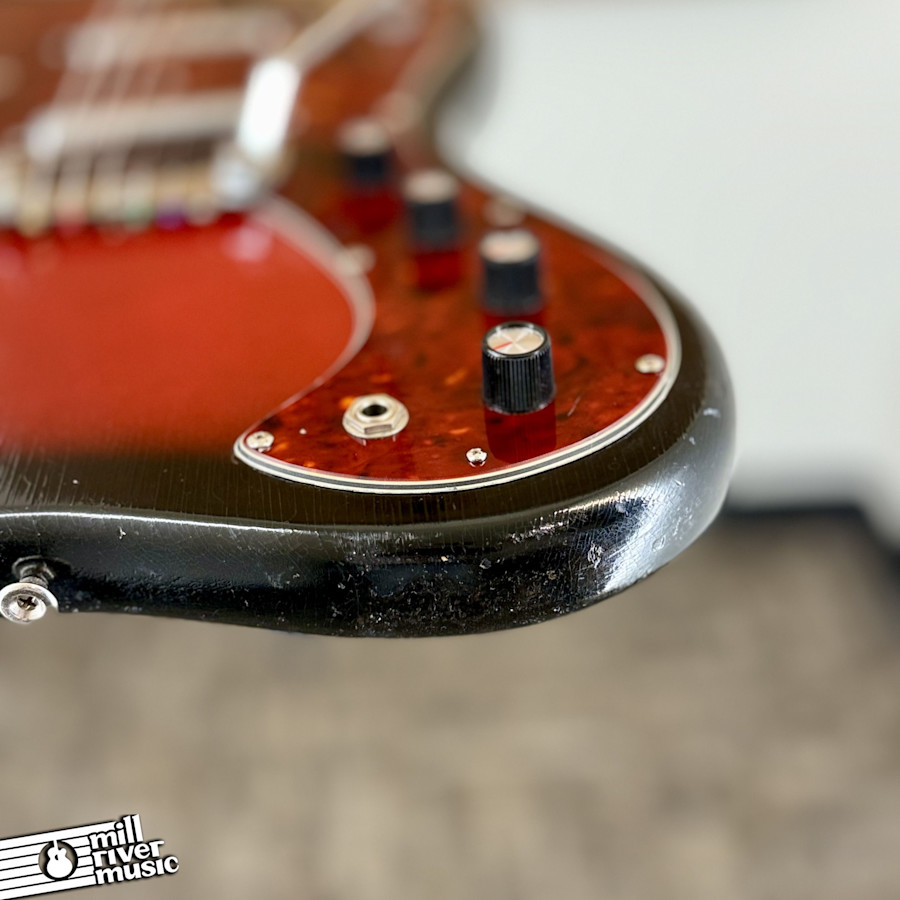 Up for your consideration is a fantastic piece of 1960s garage rock history: a 1966 Silvertone Hornet 1450L. Produced by Danelectro for Sears, the Hornet is beloved for its iconic "Lipstick" pickups and distinct offset body shape. If you are a fan of the jangle, grit, and unique character found on countless classic records, owning and playing one of these instruments is a truly thrilling experience.