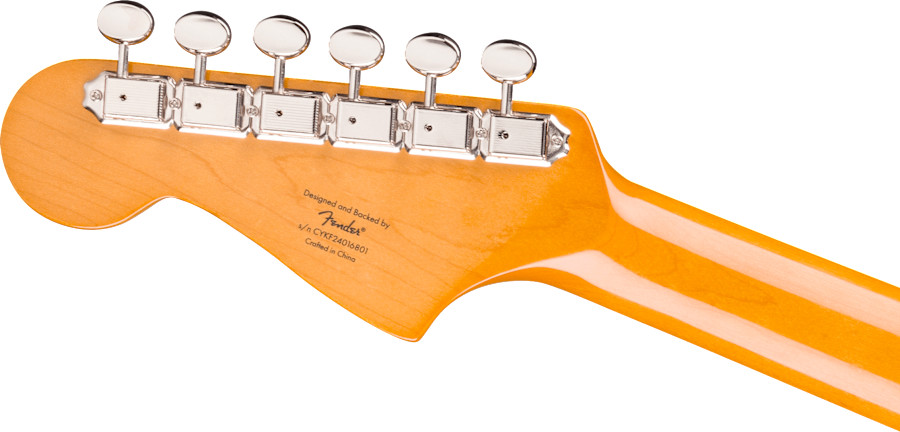 The Classic Vibe '60s Jazzmaster® is a faithful and striking homage to the iconic Fender favorite, producing undeniable Jazzmaster tone courtesy of its dual Fender-Designed alnico single-coil pickups. Player-friendly features include a slim, comfortable "C"-shaped neck profile with an easy-playing 9.5"-radius fingerboard and narrow-tall frets, a vintage-style tremolo system for expressive string bending effects, and a floating bridge with barrel saddles for solid string stability. This throwback Squier model also features 1960s-inspired headstock markings, rich-looking nickel-plated hardware and a slick vintage-tint gloss neck finish for an old-school vibe.