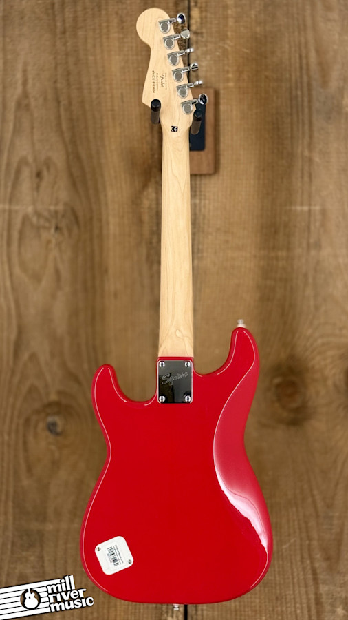 The Squier Mini Stratocaster is the perfect 3/4-size companion for younger players or travelers, but this particular 2018 model has been transformed into a formidable tonal laboratory. Featuring a 22.75" scale length and a thin, lightweight body, it offers effortless playability. While these are often seen as "starter" guitars, the extensive electronic modifications on this Torino Red example make it a unique tool for any guitarist looking for a compact instrument with a massive array of sounds.