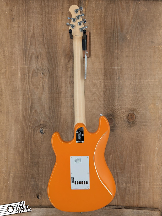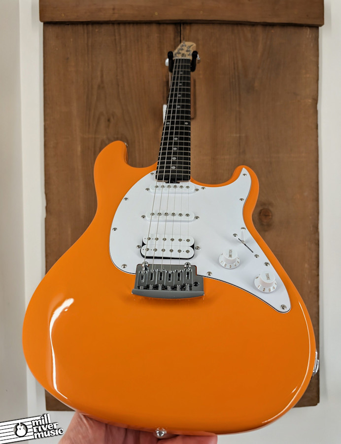 The guitar is in extremely nice condition. The Sunrise Orange finish is shiny, bright, and glossy, with just a couple of tiny dimples that were likely there from the factory. The neck has a comfortable satin finish, making it smooth and fast to play. This is a solid, comfortable, and great-sounding instrument perfect for a new player or anyone looking for a reliable backup. Please note, no bag or case is included.