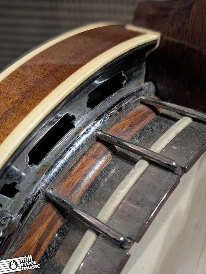 The banjo has been professionally set up in our shop and is playing great with comfortable action. It is a solid, well-built instrument that truly punches above its pay grade. It includes a hardshell case for secure storage and transport.
