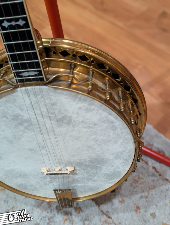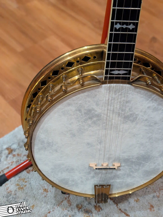 This example shows authentic wear consistent with an instrument that’s nearly a century old. The rim, resonator, and hardware exhibit tarnish, scuffs, and cosmetic marks, but the banjo remains structurally sound and playable. The neck is straight, the frets show moderate wear, and the tone is bright and cutting—perfect for ensemble playing or collectors seeking a historically significant piece.