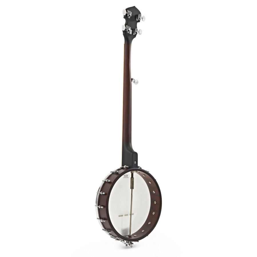 Perfect for fans of folk music, old time music and claw-hammer style players, the B7 is a mahogany open back 5-string banjo. Similar in design to our open back banjos from the early 20th century, it features a Remo® head for best tone, maple bridge with ebony tip for superb tone transfer and chrome die cast tuners for smooth tuning. Comes strung with D’Addario® strings.