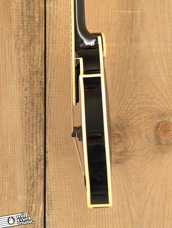 This LM-600-BK is in Very Good condition, finished in a sleek, classic Black gloss. It has been well-maintained and shows only minor signs of play wear typical of a high-gloss instrument. The ebony fingerboard and scooped extension provide an effortless playing experience, while the high-quality hardware ensures excellent tuning stability. As with all our instruments, it has been professionally inspected and set up in our shop to ensure optimal bridge seating, intonation, and comfortable action.