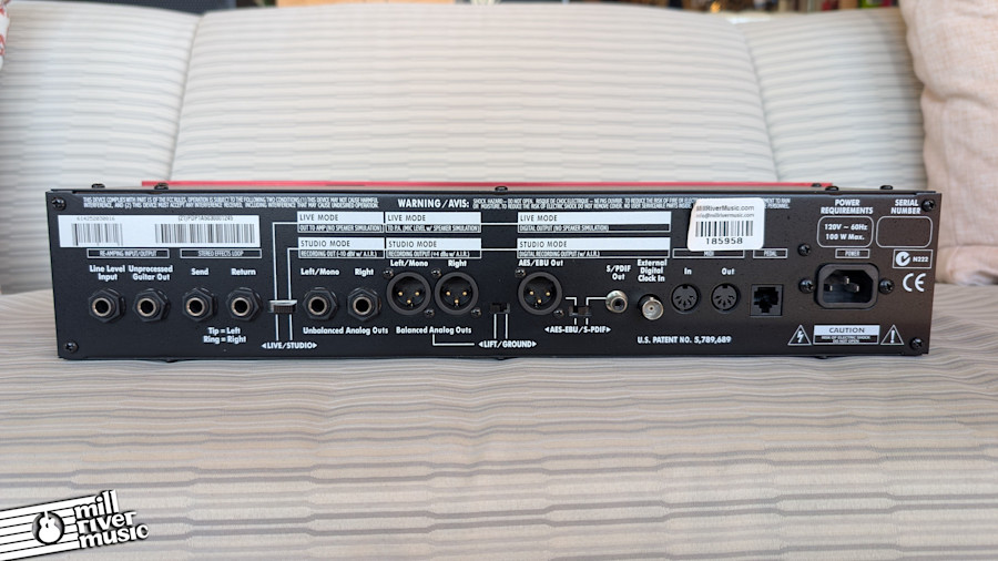 This unit has been fully tested in our shop and is in great working order. It features 24-bit AES/EBU and S/PDIF digital outputs, allowing for a direct, clean connection to your DAW or digital mixer. The front panel is laid out for speed, with dedicated knobs for drive, bass, mid, treble, and presence, as well as a dedicated reverb level. It also includes an onboard chromatic tuner and 36 user-programmable preset locations to save your favorite custom tones.