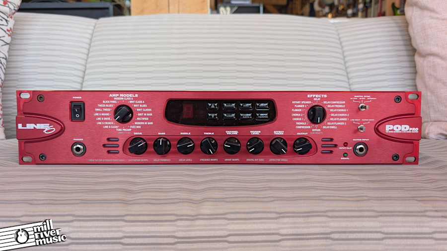 The Line 6 POD Pro is the professional rackmount evolution of the classic "red kidney bean" desktop unit that revolutionized digital amp modeling. Housed in a robust 2U chassis, the POD Pro offers 32 classic and modern amp models and 16 digital effects, providing a comprehensive toolkit for both studio tracking and live performance. Unlike its portable sibling, the Pro version features significantly expanded I/O, making it much easier to integrate into a professional signal chain.